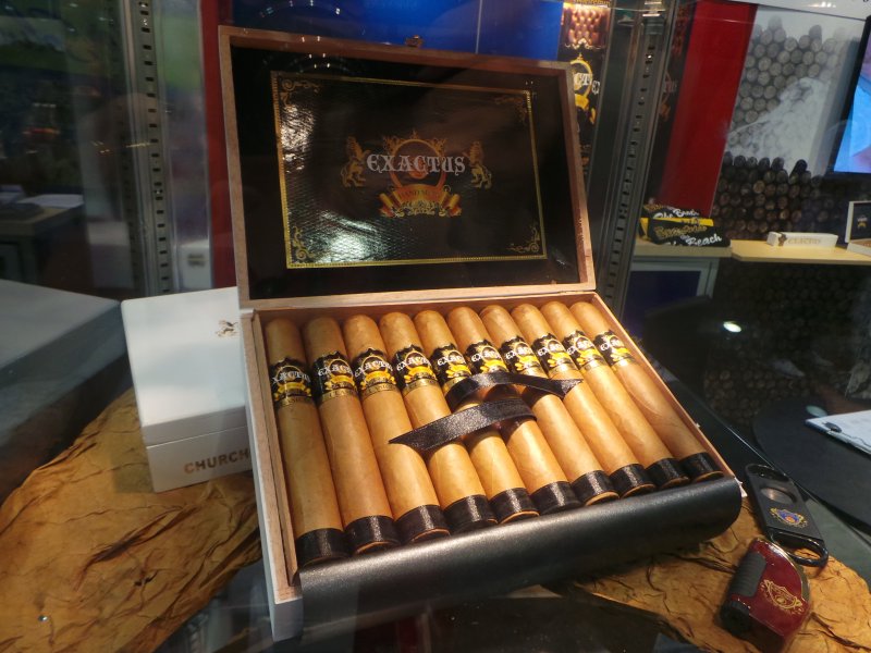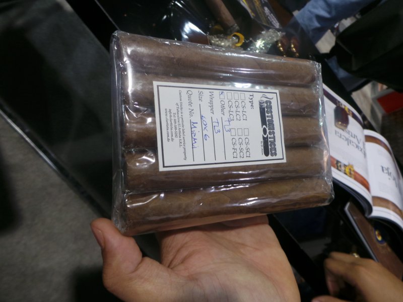 One other interesting item that I picked up on at Exactus is a hybrid leaf they have begun to grow on a small 5-acre plot in Tamboril, DR. The folks at the booth simply referred to it as “T13,” and they believe it shows great promise. The five acres used in its development are planned to expand to 300 acres be year-end 2014. Other details were more guarded, since it is still in development and under negotiation for an exclusivity agreement, but Orlando did give me a sample to try. This is probably what intrigued me most at the booth, and I will report back on this in the coming days as well.