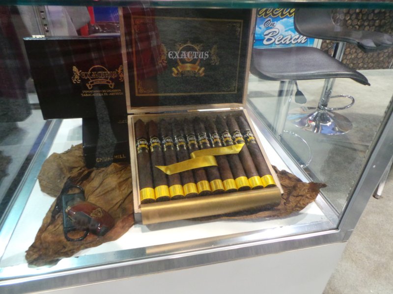 Exactus (Tabacalera El Artista) was a completely new name to me, although they have apparently been around since 1956. I spoke with Ram Rodriguez (President) and Orlando Alvarez (Sales Manager), and got a bit of backstory on the company. They have a 950 acre farm, and supply whole leaf tobacco to some big names within the industry. They have now endeavored to produce their own finished cigars as well, acting as grower, manufacturer, and US distributor. In the past, much of these efforts have been directed at produced custom made house brand cigars for various retailers and supply houses. The main thrust of their new growth is in their own brand – Exactus. Exactus is available in three blends – the Habano (Wrapper: Ecuador Habano, Binder/Filler: PA, Criollo ’98), Maduro (Wrapper: DR 3-yr maduro, Binder/Filler: PA, “Wine Fermented”), and Clasico (Wrapper: Ecuador Connecticut, Binder/Filler: Piloto Cubano, Criollo). They can be had in five vitolas – Toro, Churchill, Torpedo, Robusto, and Coloso (6″X60). I have samples of each that I will report back on once they have rested from my extended travels after the show.