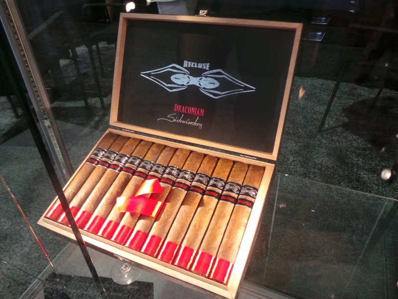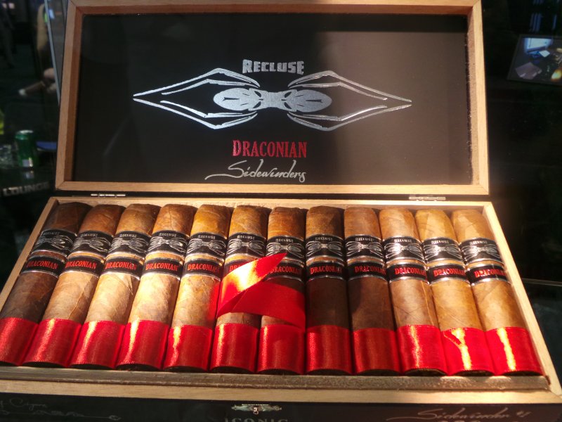 Iconic was actually the first stop I made at the show, and the first cigar I smoked. I mentioned it on Half Ashed that day, and truly enjoyed the new Sidewinder. They are already established, and are building a dedicated following, but were new to me (except for some press releases I’ve published in the past). I don’t believe I had smoked the earlier Recluse releases. The Sidewinder carries an Ecuadoran maduro Wrapper, proprietary binder, and Dominican/Brazilian/”Iconic Leaf” filler blend. Despite my normal tendencies toward smaller cigars the 7″ by 57 ring example I smoked was a fantastic smoke. With the added bonus of its having a unique shape that lends itself to cutter-free opening, I think it’s a definite hit that will do well on store shelves. It was loaded with toasty, dark flavors that are very appealing for me, and I’ll be buying them without a doubt. I’ll also be posting a full review once my remaining sample comes up in the queue. Look for them…buy them…try them. I don’t think you’ll be disappointed.