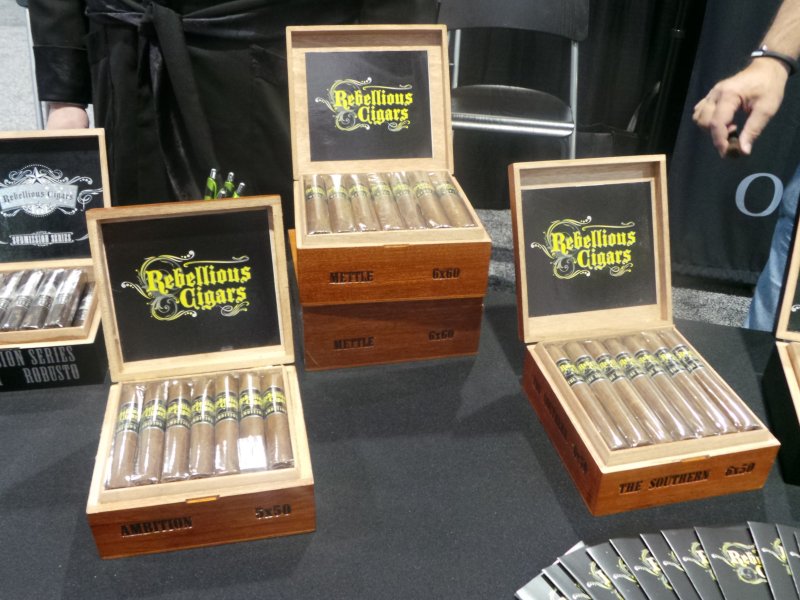 Out of South Carolina, Rebellious Cigars is another new exhibitor (at least to me) for this year’s IPCPR show. I incidentally ran into the folks behind the brand while passing through the House of Emilio booths, and made a stop by their booth shortly afterward. They have two current offerings: The Submission Series (launched July 2013), with a Sungrown Nicaraguan wrapper, Ecuadoran binder, and Nica/DR/Columbian filler blend – available in 5×50 (“Kimura”), 6×50 (“Triangle”), 6×60 (“Guillotine”). Each size is named after a MMA submission hold. The second line is the Signature Series (launched April 2013), with an Ecuadoran Habano wrapper, Nicaraguan Habano binder, and Jalapa/Esteli/DR Piloto Cubano filler blend – available in 5×50 (“Ambition”); 6×50 (“The Southern”); 6×60 (“Mettle”). I’ve now had the chance to smoke the Ambition, and am excited to go through the lineup – in particular, the Kimura sounds like a fantastic composition to me. Stay tuned for that as I assemble more detail….