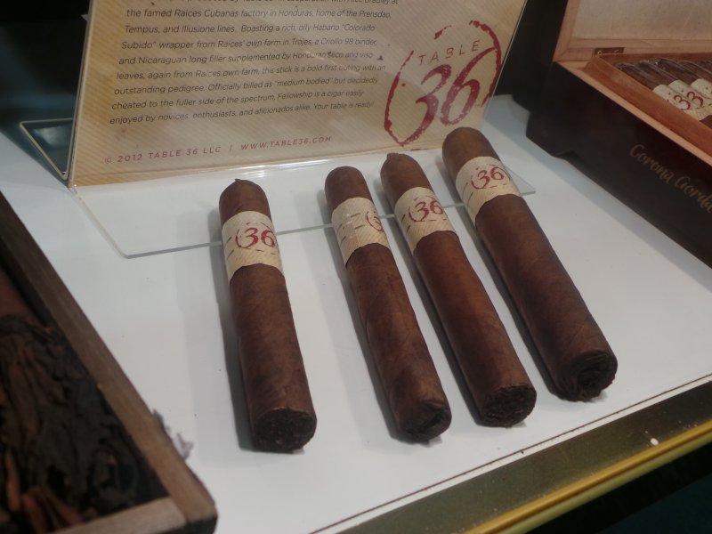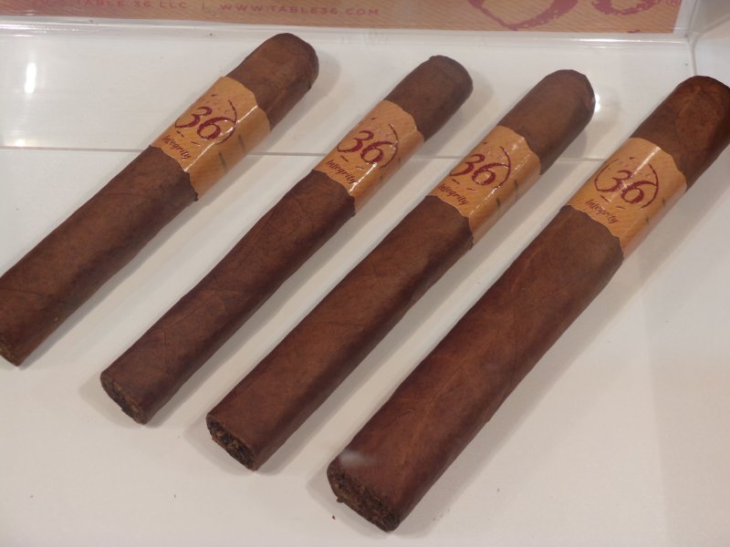 I first smoked a Table 36 cigar, the Fellowship (blended and produced via Alec Bradley, featuring a filler mix of Honduran leaf grown on Raices own farm in Trojes and Nicaraguan leaf from the Jalapa valley. These long filler tobaccos are all tied together with a Honduran Criollo 98 binder and wrapped in a rich Honduran Habano “Colorado Subido” leaf), last year at the 2012 CHATWEETUP. I absolutely adored the smoke, but later had difficulty in finding a Florida retailer that carried the brand. The closest I could turn up was in the panhandle, some 8 hours’ drive from me. So, they had fallen off my radar for a while. I saw the booth at IPCPR, and made a trip over to introduce myself. If you’re not familiar with the line, you should get yourself over to their website to check out the backstory and origin of the brand. They have a really cool story, and a code of ethics/behavior that I can get behind – in addition to some great cigars. There are a number of company reps I want to bring on as guests for Half Ashed, and Table 36 is near the top. They’re putting out some cigars that I think deserve more attention. In the time since last year’s show, they also released the Integrity – a “Jalapa wrapper atop a double binder of Esteli and Jalapa which in turn secures ligero from both Condega and Jalapa all fashioned into a stylish soft box press.” The new line from them is called the Peacemaker, and will be shipping this Fall. I’ll be paying attention; the product quality and character is there for something great in the industry. I’d love to find these on my local shop’s shelves….